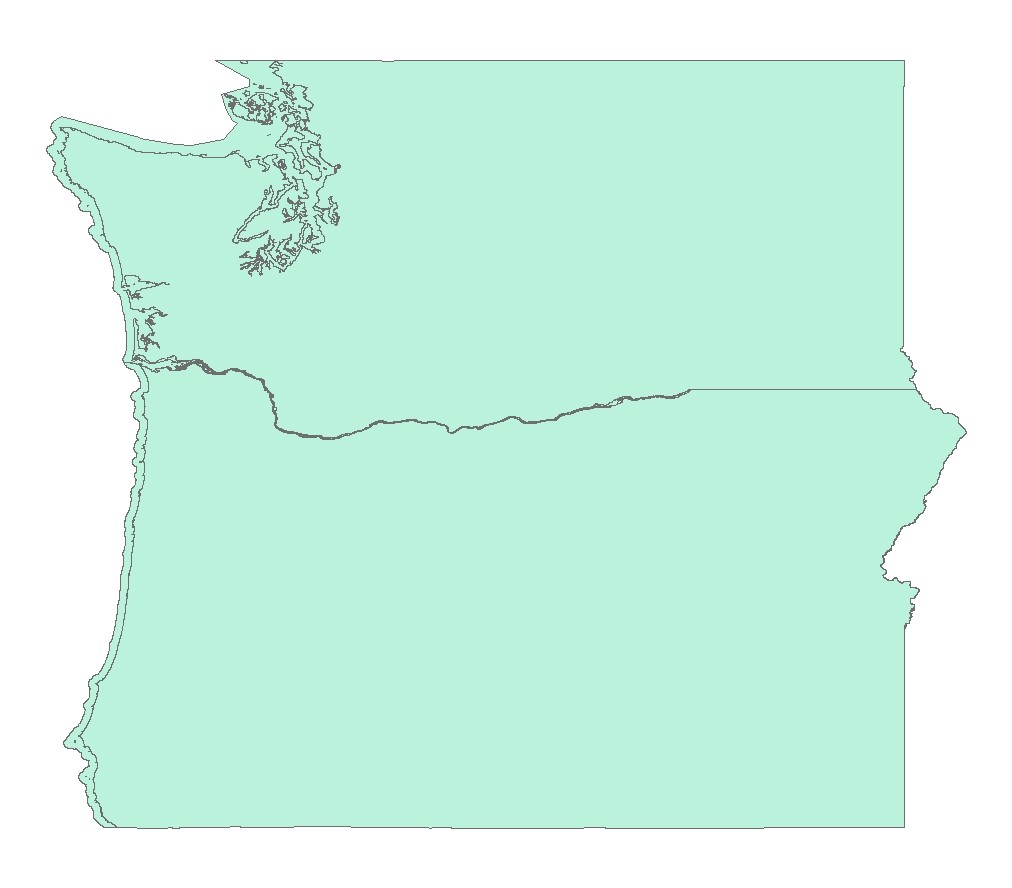 Description: state_poly: This theme shows the jurisdictional and cartographic state perimeters for Oregon and Washington.